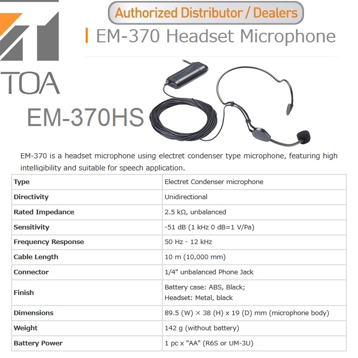 TOA EM-370HS HEADSET MICROPHONE