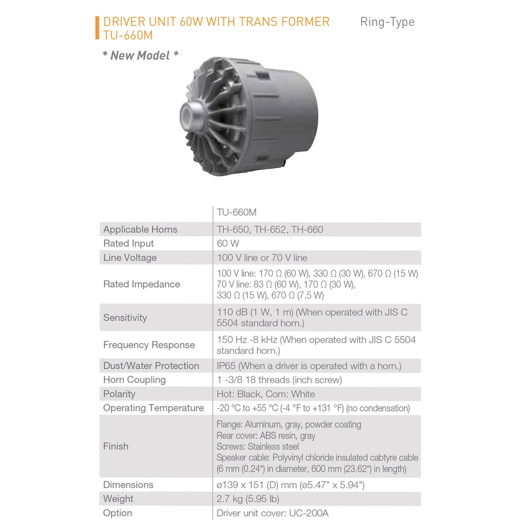 TOA TU-660M/ TU660M Unit 60W Driver Unit TU-660M 60W Horn Speaker Driver Unit With Variable 70 / 100V Line Transformer