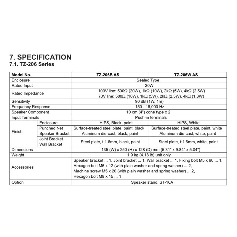 TOA TZ-206 20W Column Speaker System (1Pc)