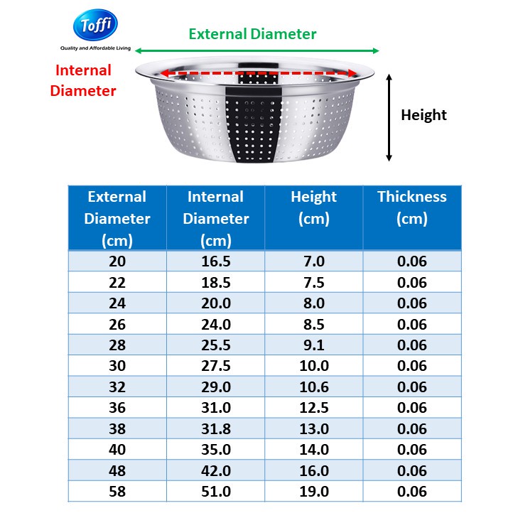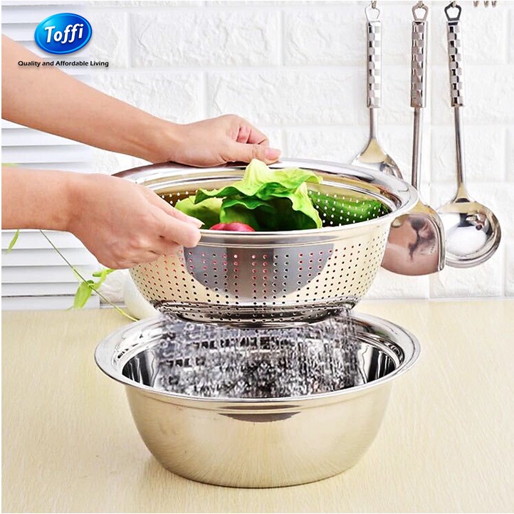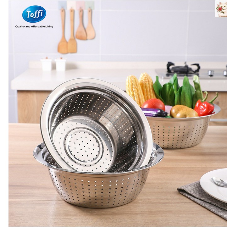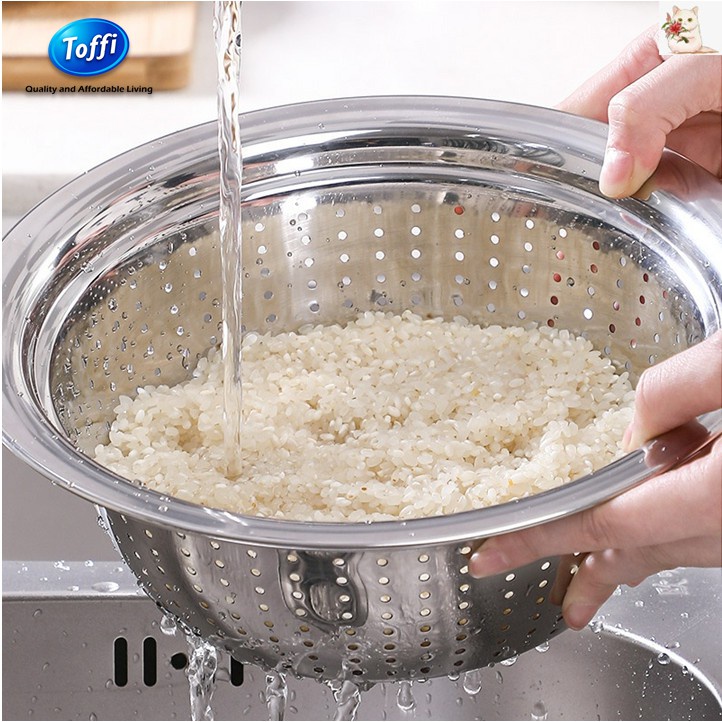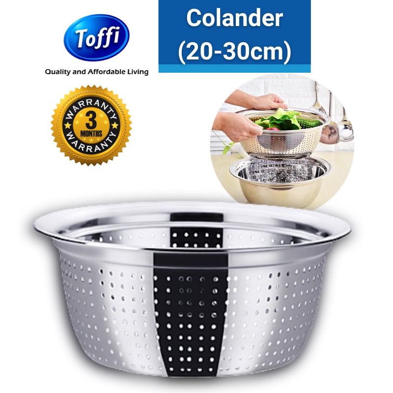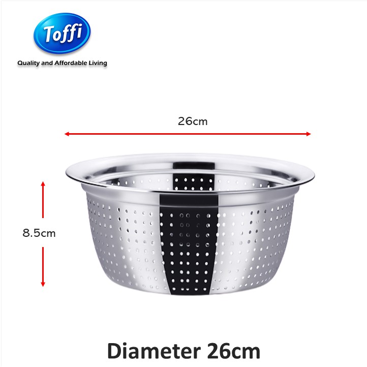 TOFFI K3900 Series Penapis Keluli Tahan Karat Stainless Steel Colander For Rinsing Fruit & Vege (20/22/24/26/28/30cm)