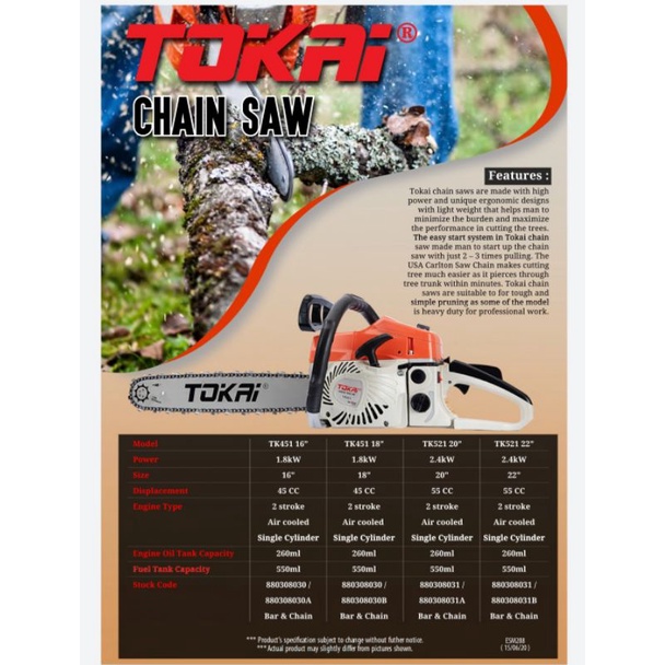 TOKAI JAPAN BRAND Chain Saw Series TK451 and TK521 16" 18" 20" 22"