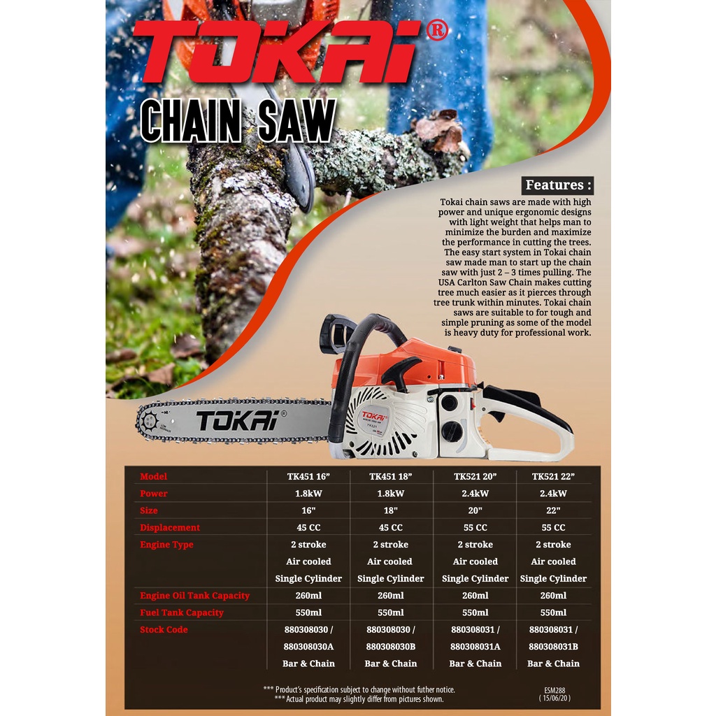 TOKAI JAPAN BRAND Tokai ChainSaw CARLTON SAW CHAIN TK451 TK521 Garden Kebun Gergaji Besi Memotong Pokok