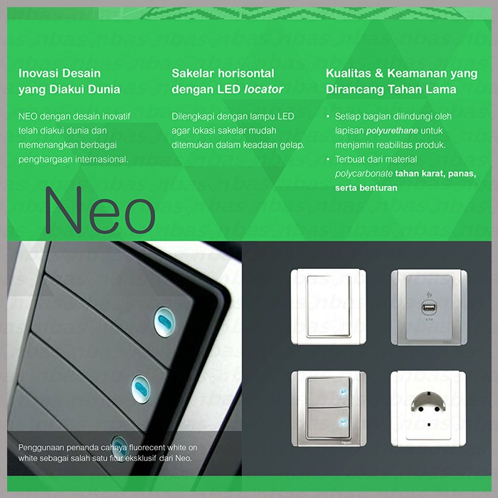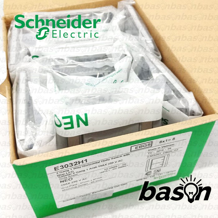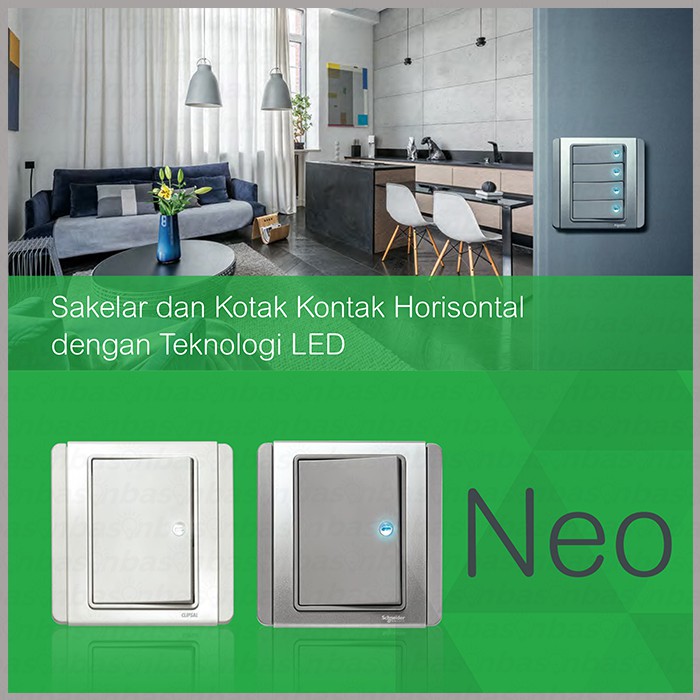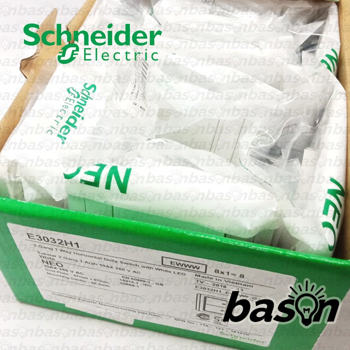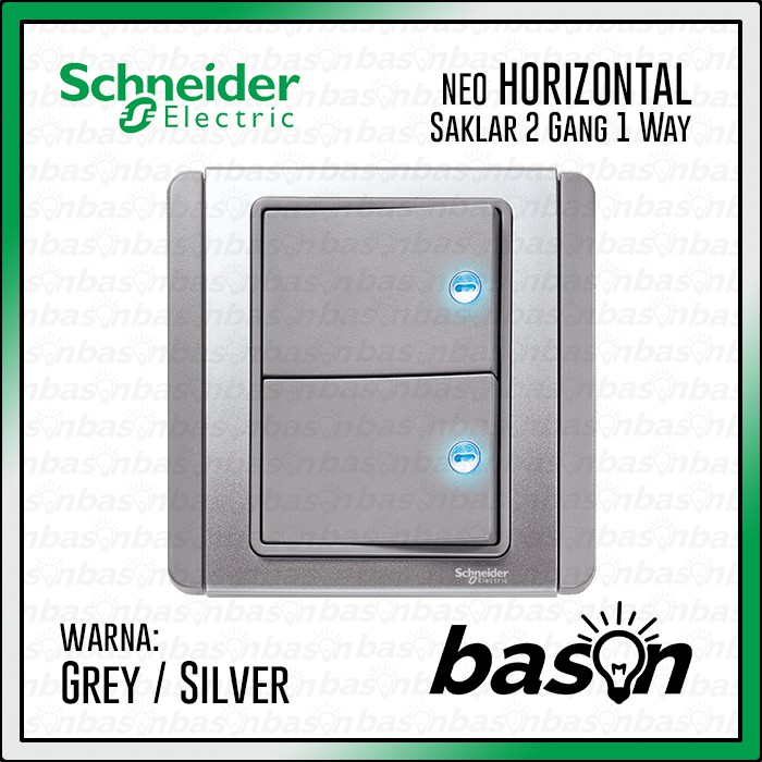 TOMBOL Schneider NEO HORIZONTAL 2 Gang 1 Way - 2 Button 1 Way Switch with indicator light