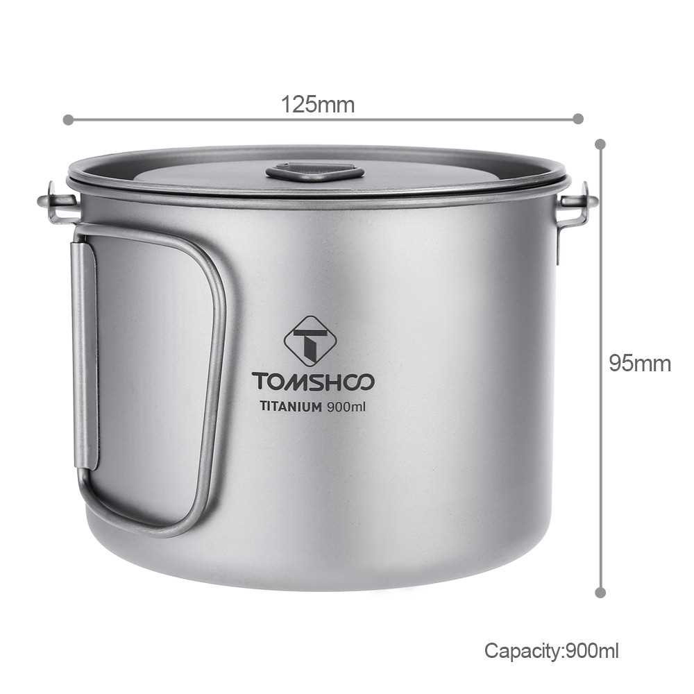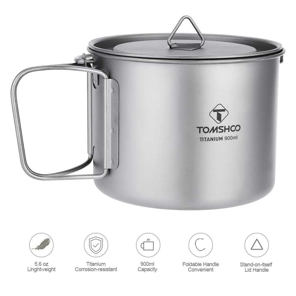 TOMSHOO 900ML Titanium Pot Portable Titanium Water Mug Cup ()