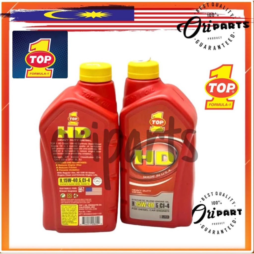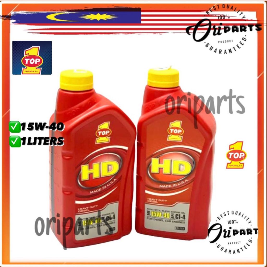 TOP 1 HEAVY DUTY HD PLUS 15W40 1L DIESEL ENGINE OIL API CI-4 ORIGINAL TOP1 15W-40 VAN BUS 4x4 CAR HILUX RANGER NAVARA