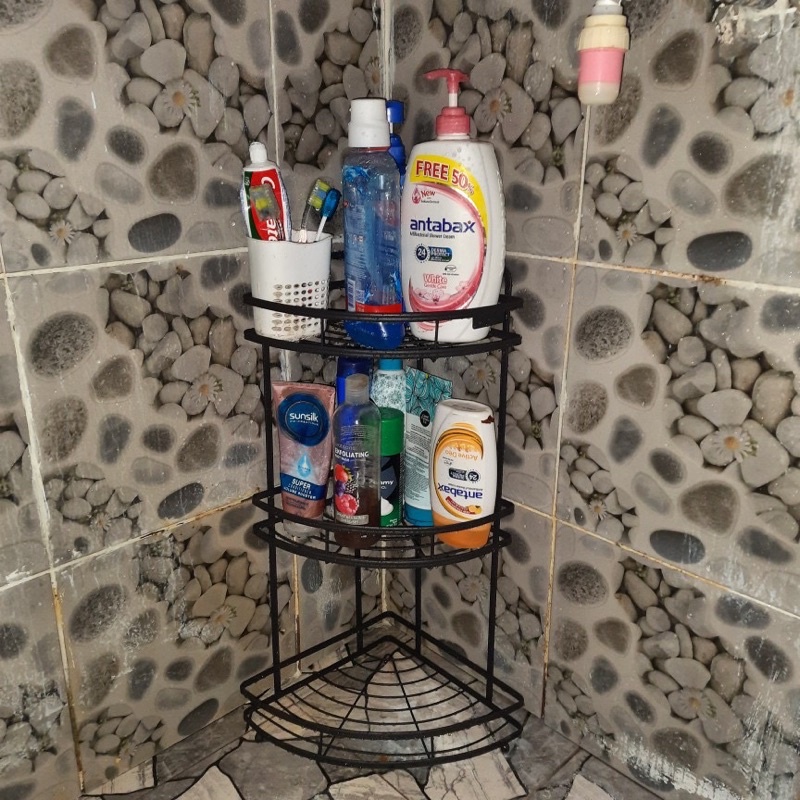 TOP POINT 2/3 Tier Triangular Wall Corner Iron Coated Bathroom Shampoo Rack Triangle Storage Rack Rak Shampoo Segi Tiga