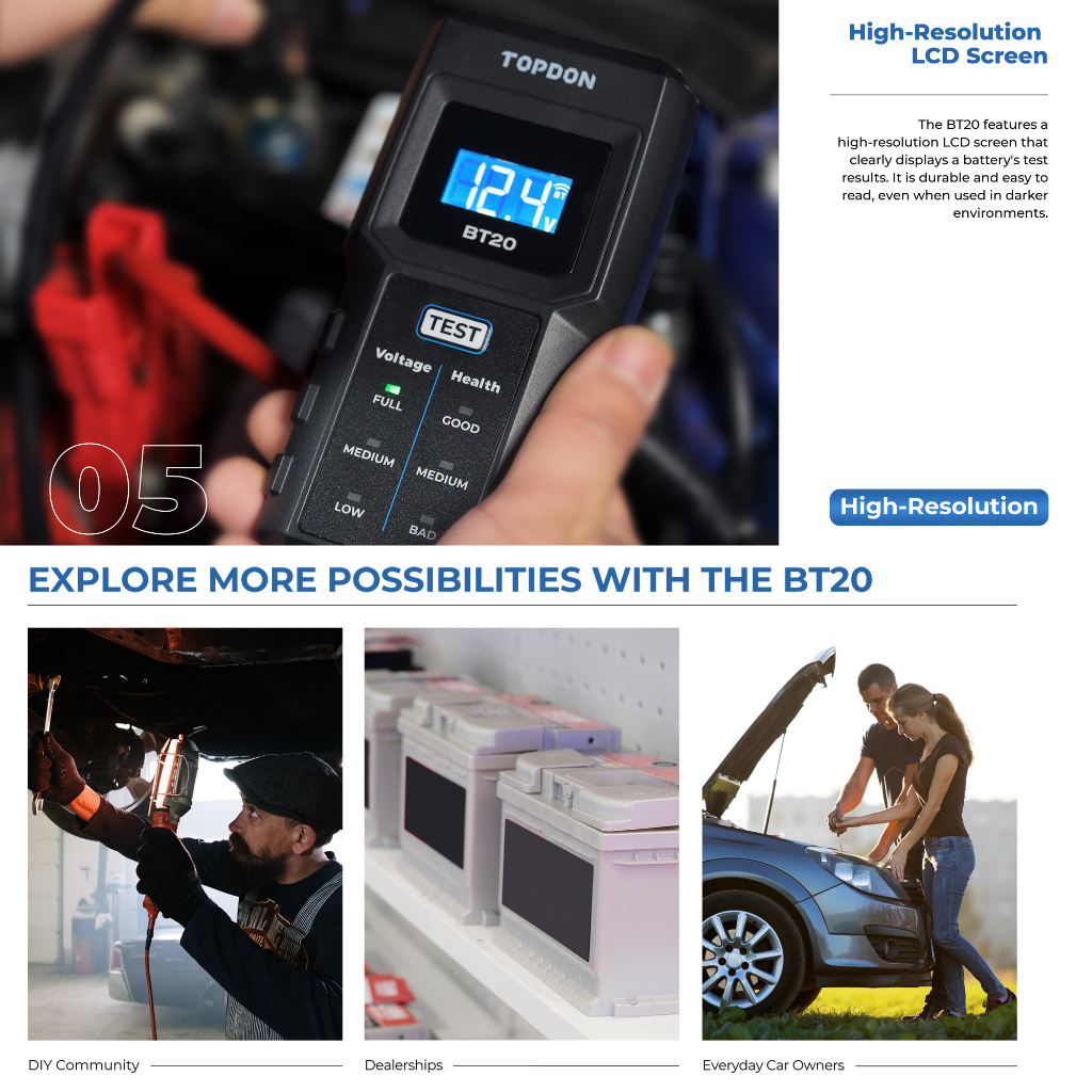 TOPDON BT20 Vehicle 12V Car Battery Tester (100-2000 CCA)
