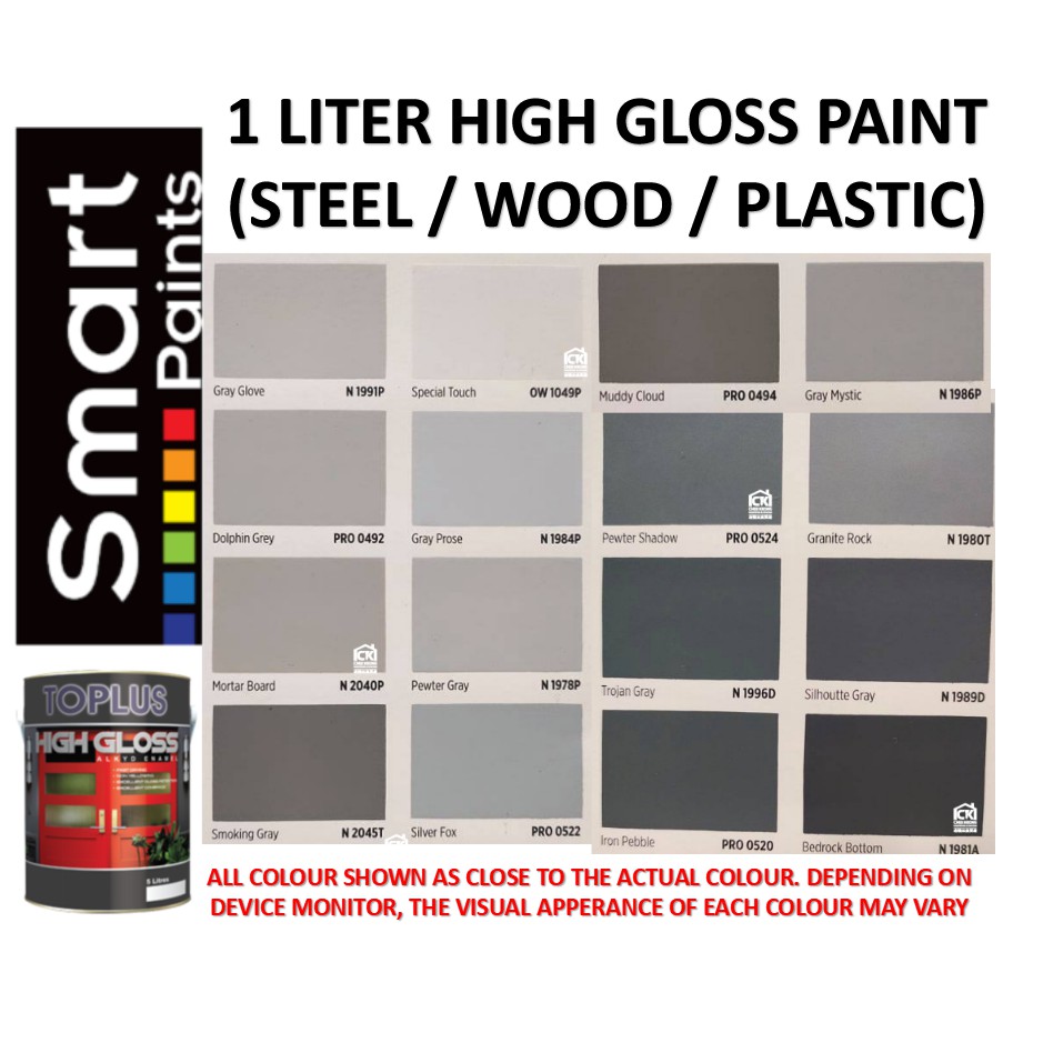 TOPLUS HIGH GLOSS PAINT GREY WOODPAINT STEEL PAINT GRILL DOOR PAINT PLASTIC / CAT MINYAK KAYU BESI PINTU PAGAR KELABU