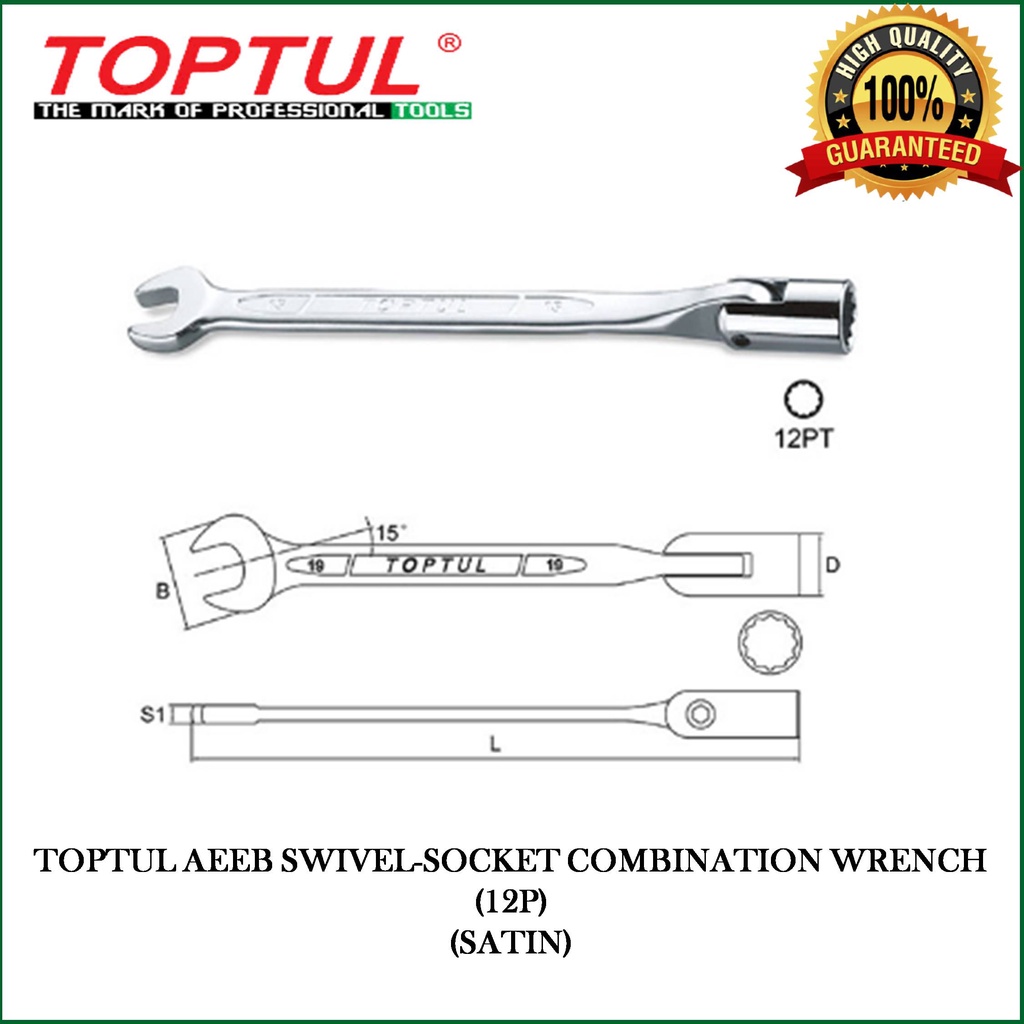 TOPTUL AEEB SERIES SWIVEL-SOCKET COMBINATION WRENCH (12P) (SATIN)