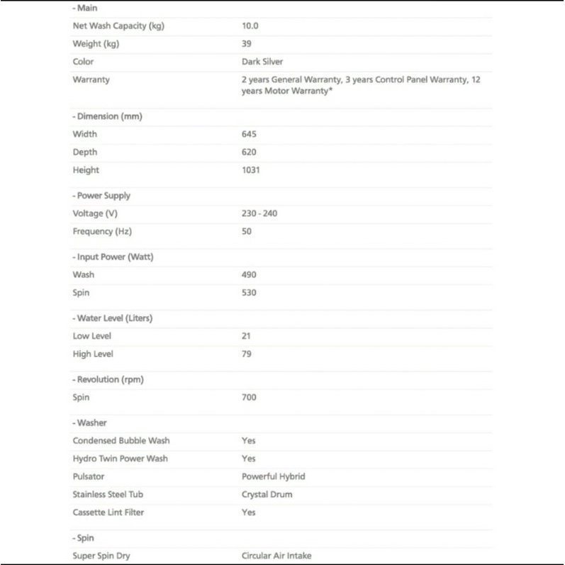 TOSHIBA 10.5kg Washing Machine AW-UK1150H