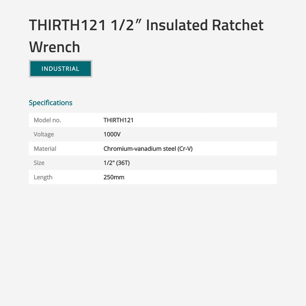 TOTAL Insulated Ratchet Wrench Reversible Handle and Quick Release for Voltage Range (1/2"/36T/1000V) THIRTH121