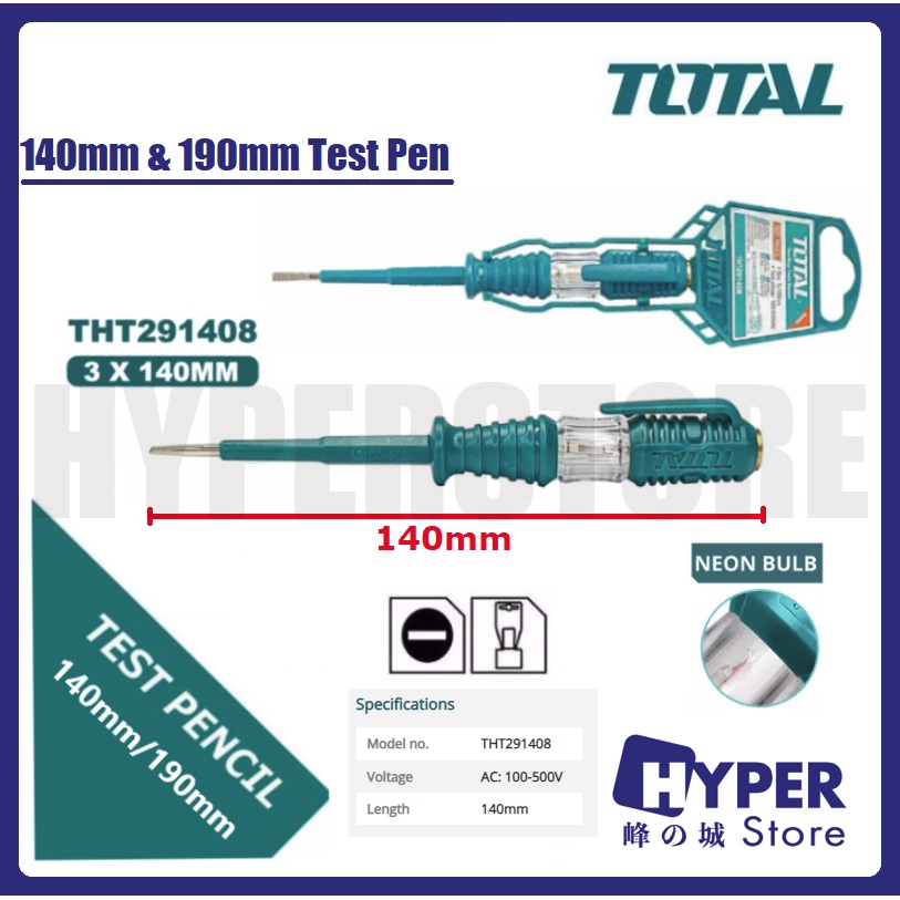 TOTAL 140mm & 190mm Test Pen / Testpen / Pen Ujian Berlampu ( THT291408 / THT291908 )