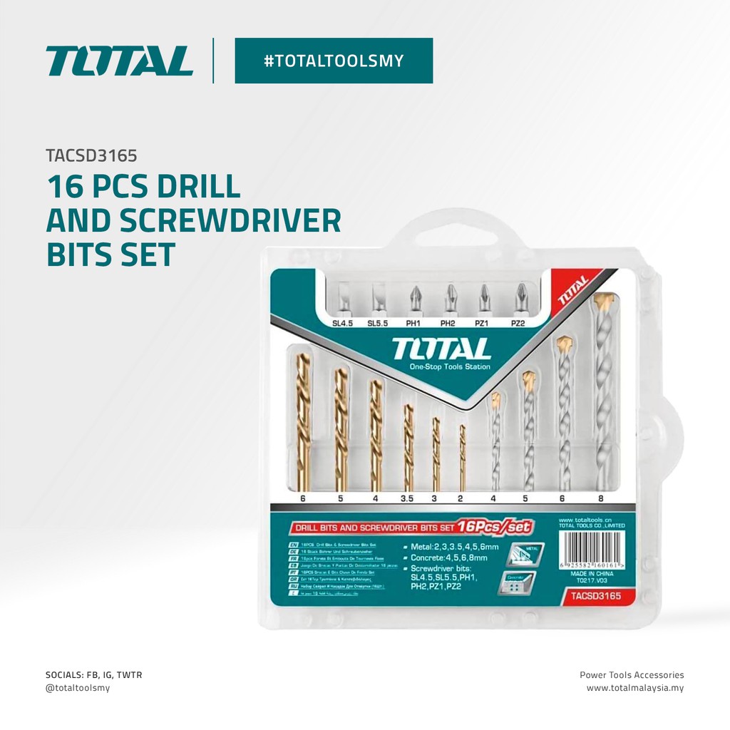 TOTAL Drill and Screwdriver Bits Set (16 Pcs) TACSD3165