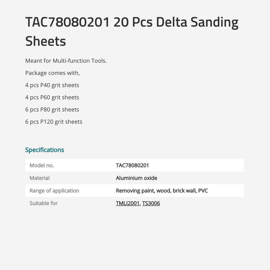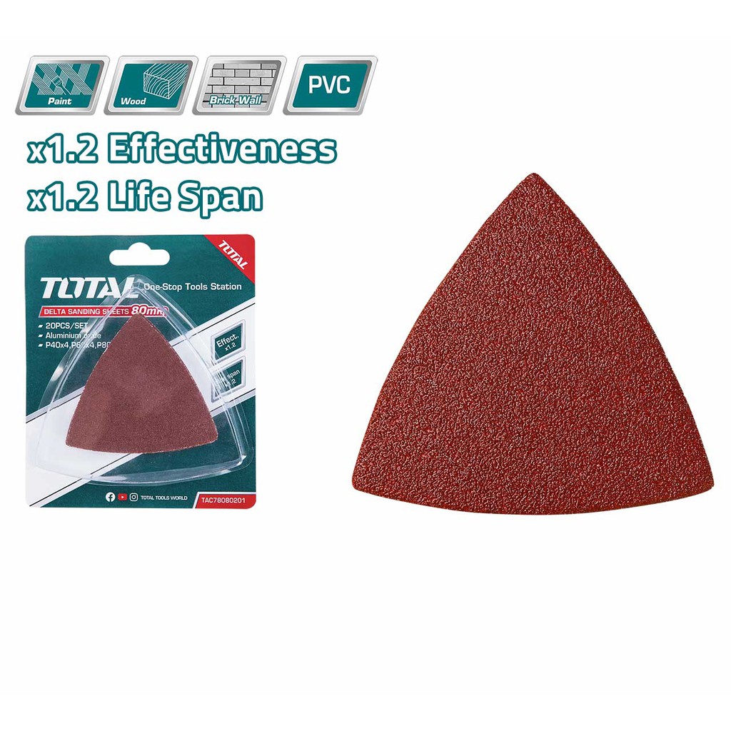 TOTAL Delta Sanding Sheets Sand Paper Grit P40-P120 Aluminum for TMLI2001 & TS3006 Multi Tool (20 Pcs) TAC78080201