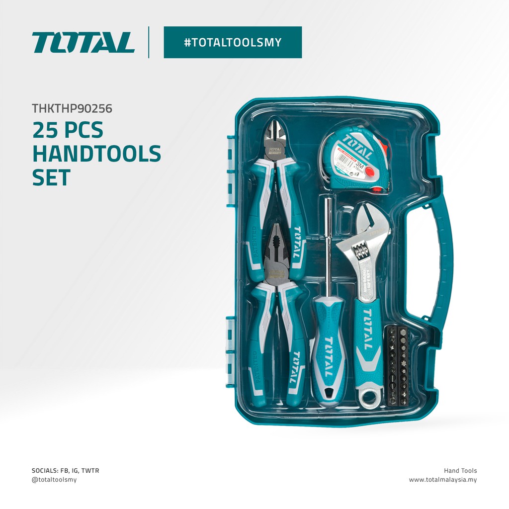 TOTAL Handtools Set With Screwdriver Bits, Measuring Tape, Pliers & Adjustable Wrench (25 Pcs) THKTHP90256