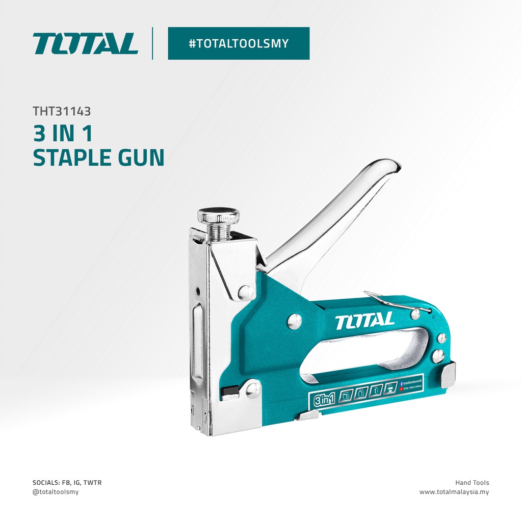 TOTAL 3 In 1 Staple Gun With Adjustable Driving Force [Free Staples D, U & T Type 600 Pcs] THT31143
