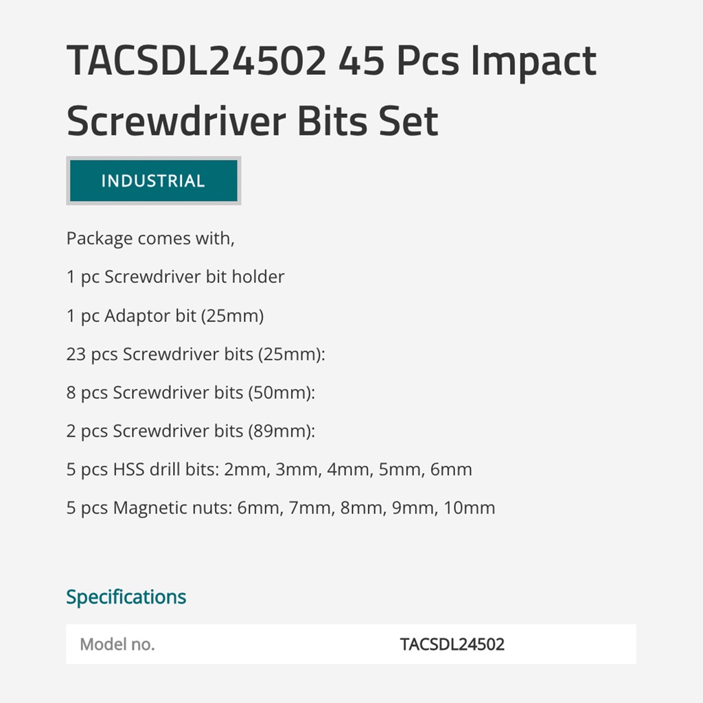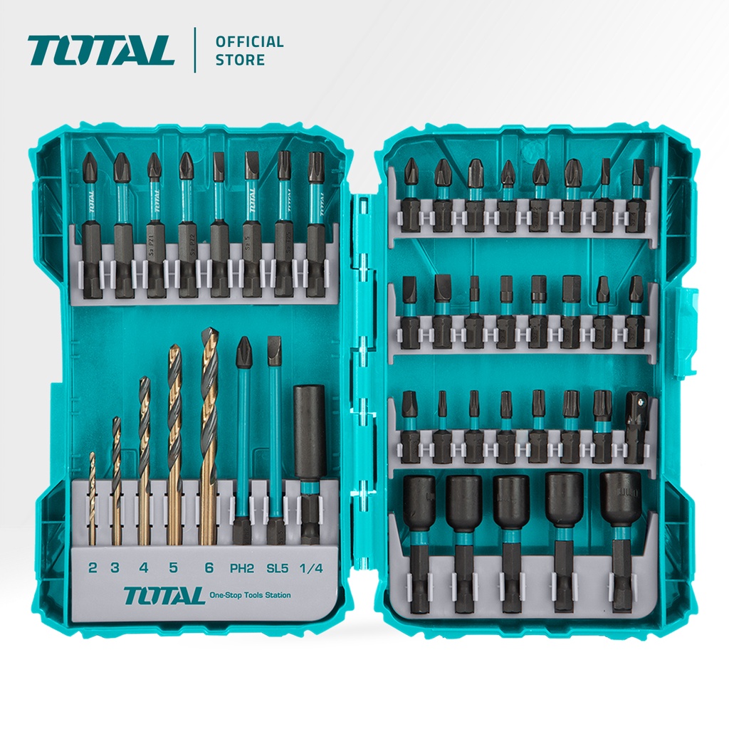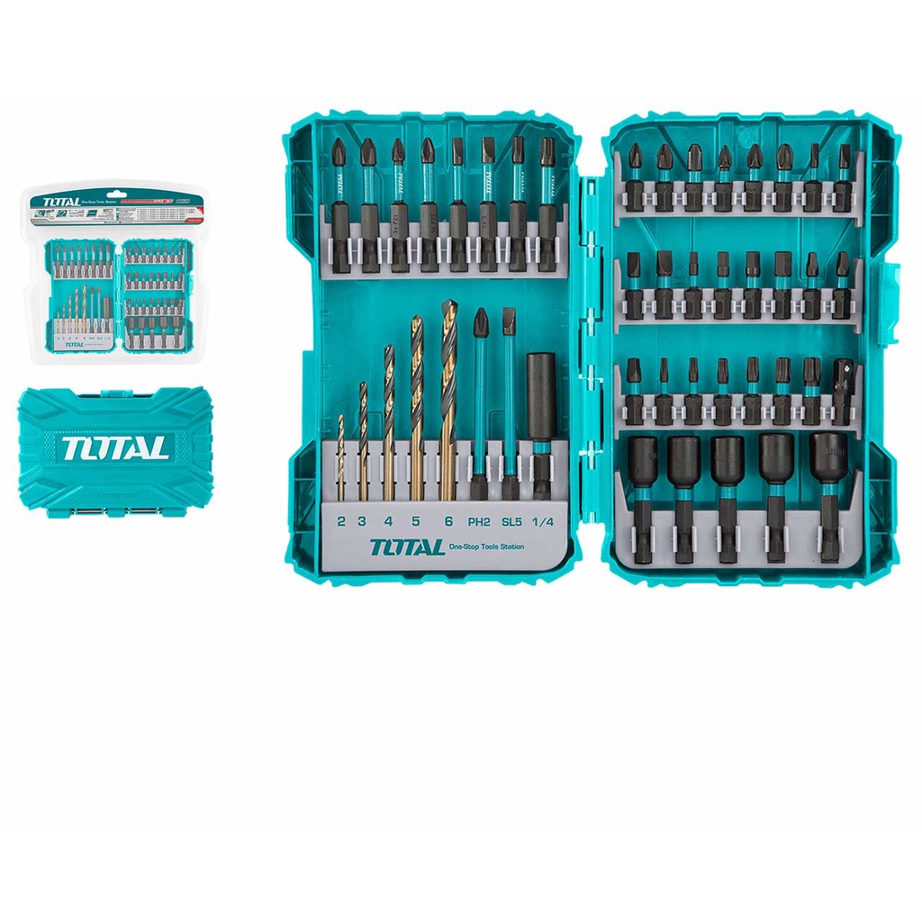 TOTAL Impact Screwdriver Bits Set With HSS Drill & Magnetic Nuts In Plastic Case (25mm/50mm/89mm/45 Pcs) TACSDL24502