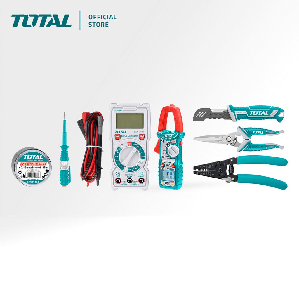 TOTAL Telecom Tools Set With Multimeter, AC Clamp, Wire Stripping Pliers, Scissors, Knife & Test Pen (7 Pcs) THKTV02T071