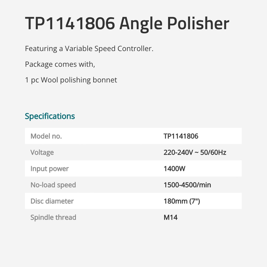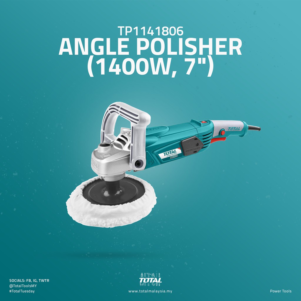 TOTAL Angle Polisher (1400W) + Wool Polishing Bonnet M14 Thread (7"/1 Pc) TP1141806
