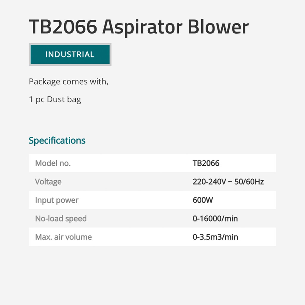 TOTAL Aspirator Blower Clear/Blow/Clean Garden & Leaf (600W) TB2066