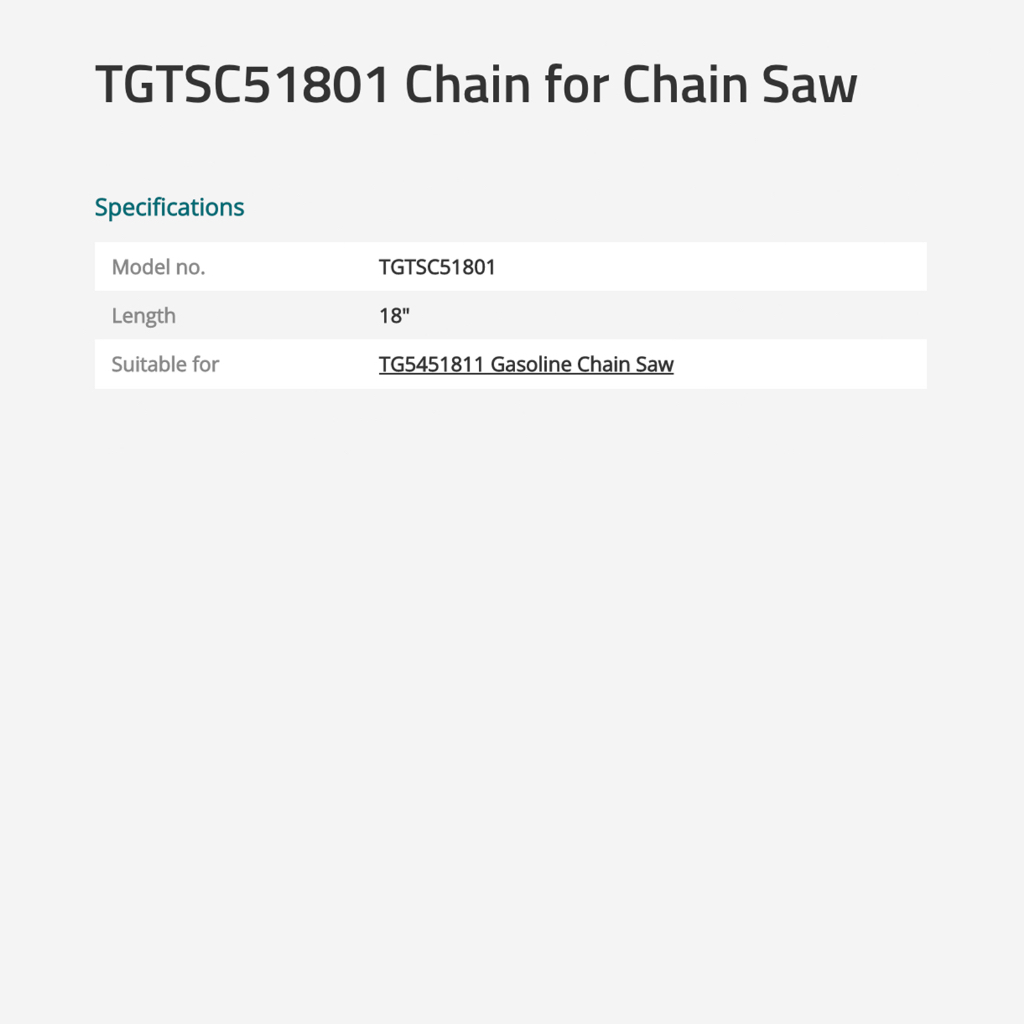 TOTAL Chain For Gasoline Chain Saw Replacement Part TG5451811 (18") TGTSC51801