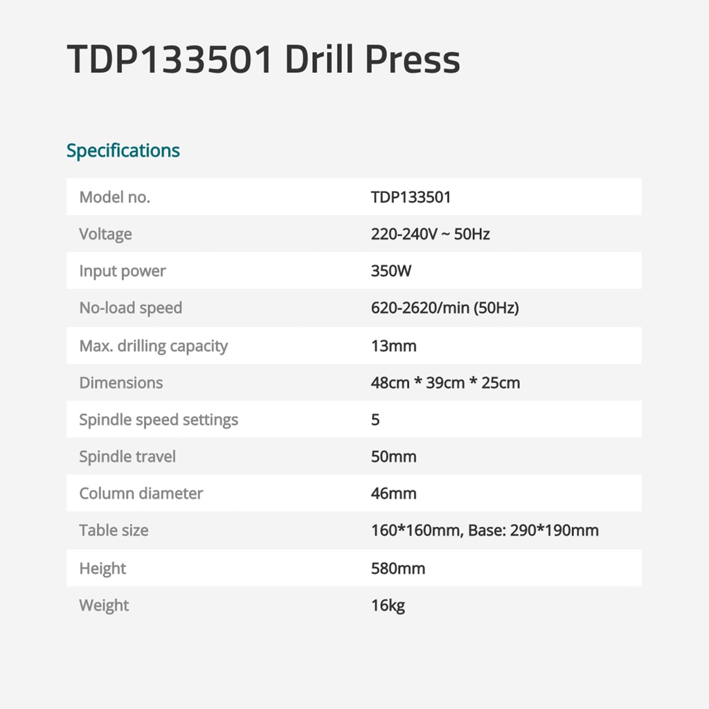 TOTAL Drill Press 5 Speed Settings & Self Assemble Required (350W/Max Drill 13mm/50mm) TDP133501
