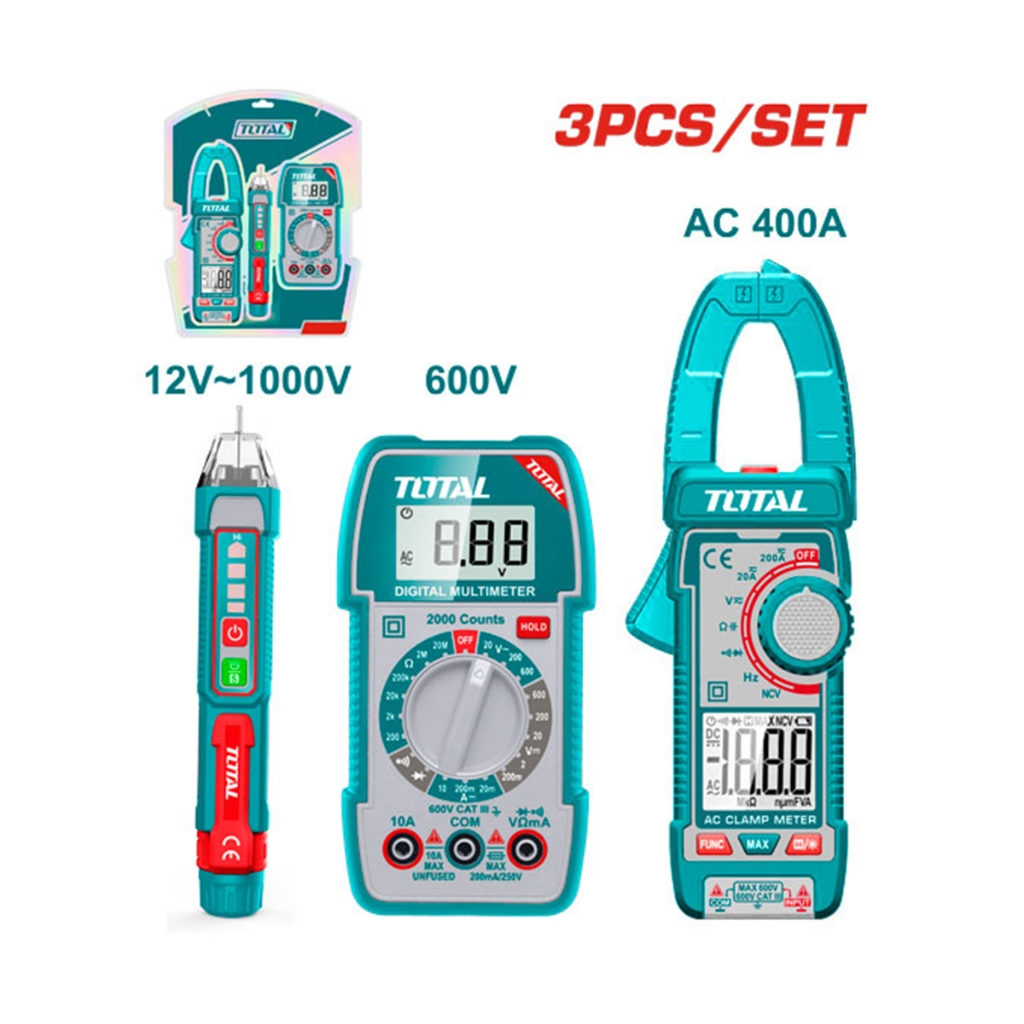 TOTAL Tools 3 Pcs Electrical Test Kit (Digital AC Clamp Meter + AC Voltage Detector + Digital Multimeter) TOS23068