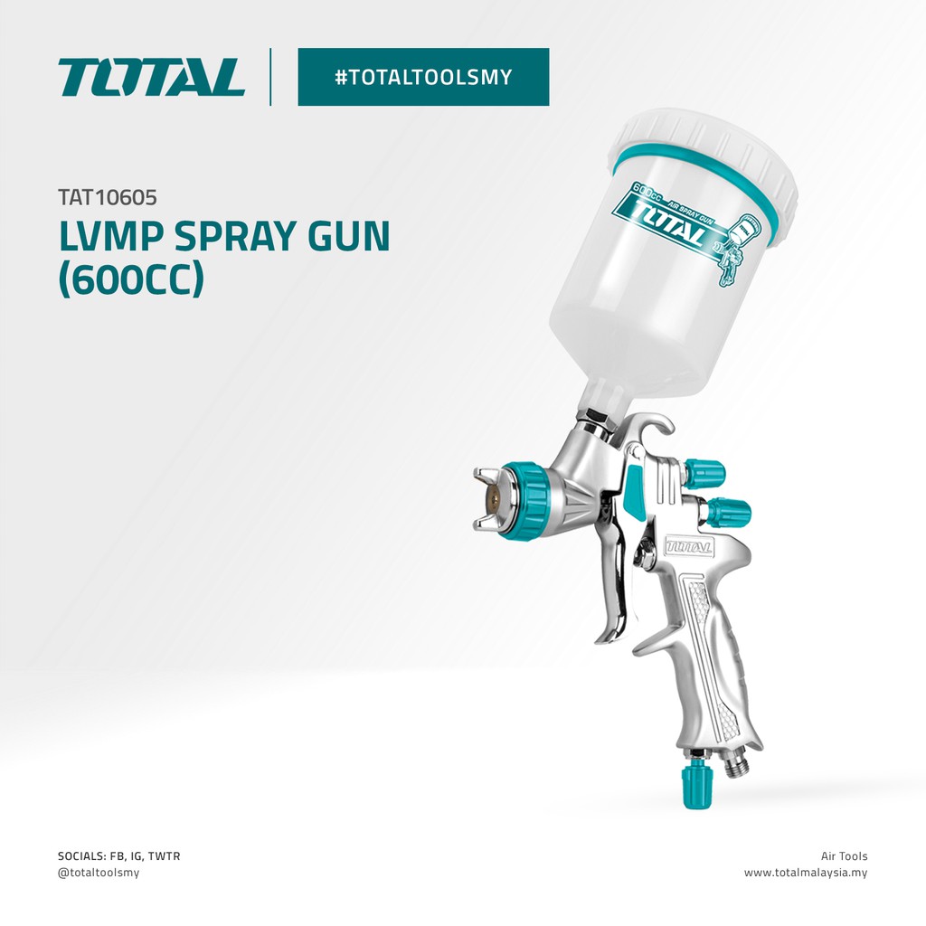 TOTAL LVMP Spray Gun 600cc Container Nozzle (1.3mm/1/4 Inlet) TAT10605