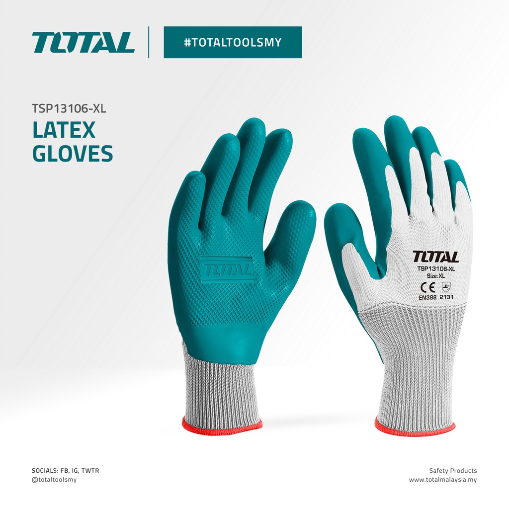 TOTAL Latex Gloves For Slight Sharp Objects Heavy Cargo Handling Made With Latex, Cotton & Polyester TSP13106-XL
