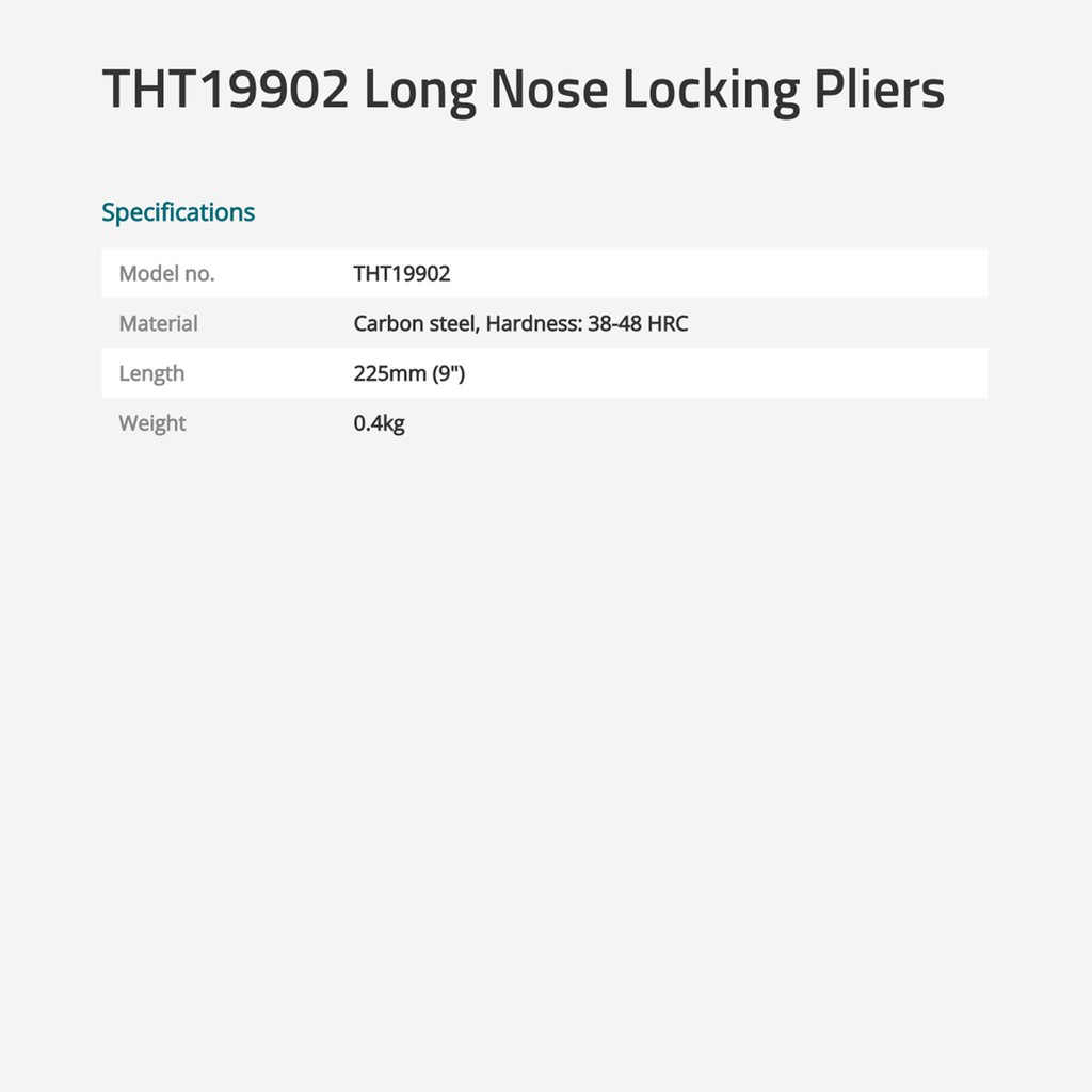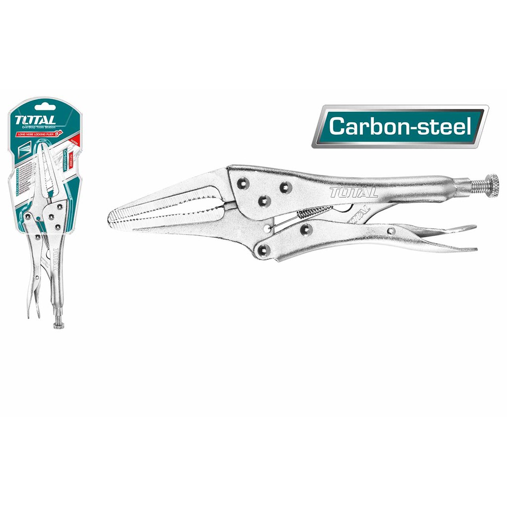 TOTAL Long Nose Locking Pliers Suitable In Tight Spaces To Clamp Or Twist Carbon Steel 38-48 HRC (9") THT19902