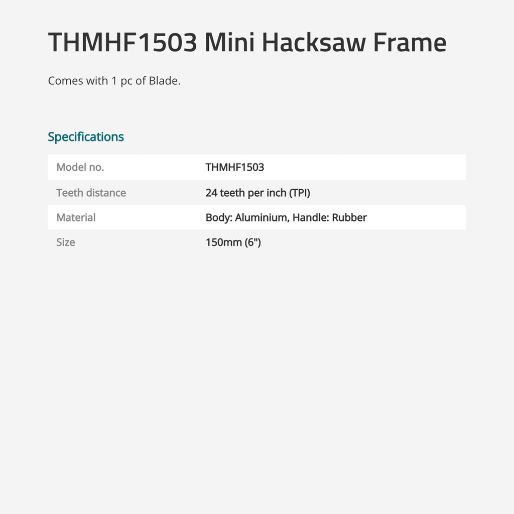 TOTAL Mini Hacksaw Frame, 24 TPI, Aluminium Body With Comfortable Rubber Handle (6") [Free Blade] THMHF1503