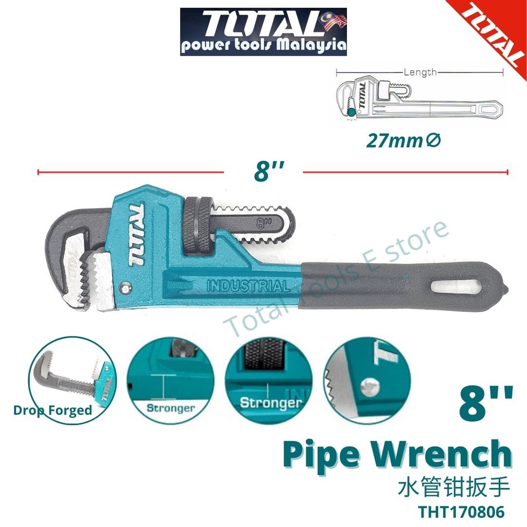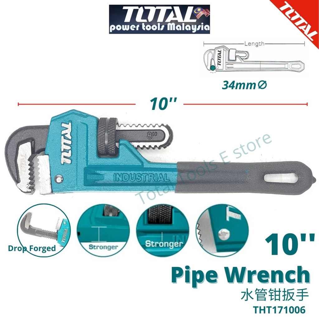TOTAL Pipe Wrench - THT170806 (8'') THT171006 (10'') THT171206 (12'') THT171146 (14'') THT171186 (18'') THT171246 (24'')