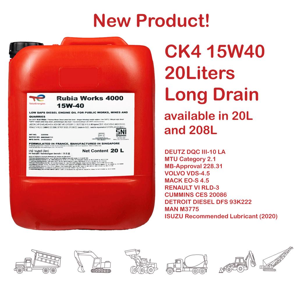 TOTAL RUBIA WORKS 4000 15W40 CK4 (20 LITERS) HEAVY DUTY DIESEL ENGINE OIL HDEO DIESEL / PETROL