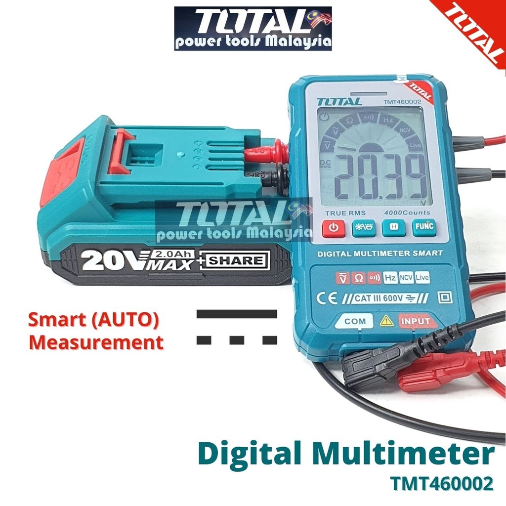 TOTAL Smart (AUTO) Measurement Digital Multimeter CAT III 600V 4000 counts - TMT460002