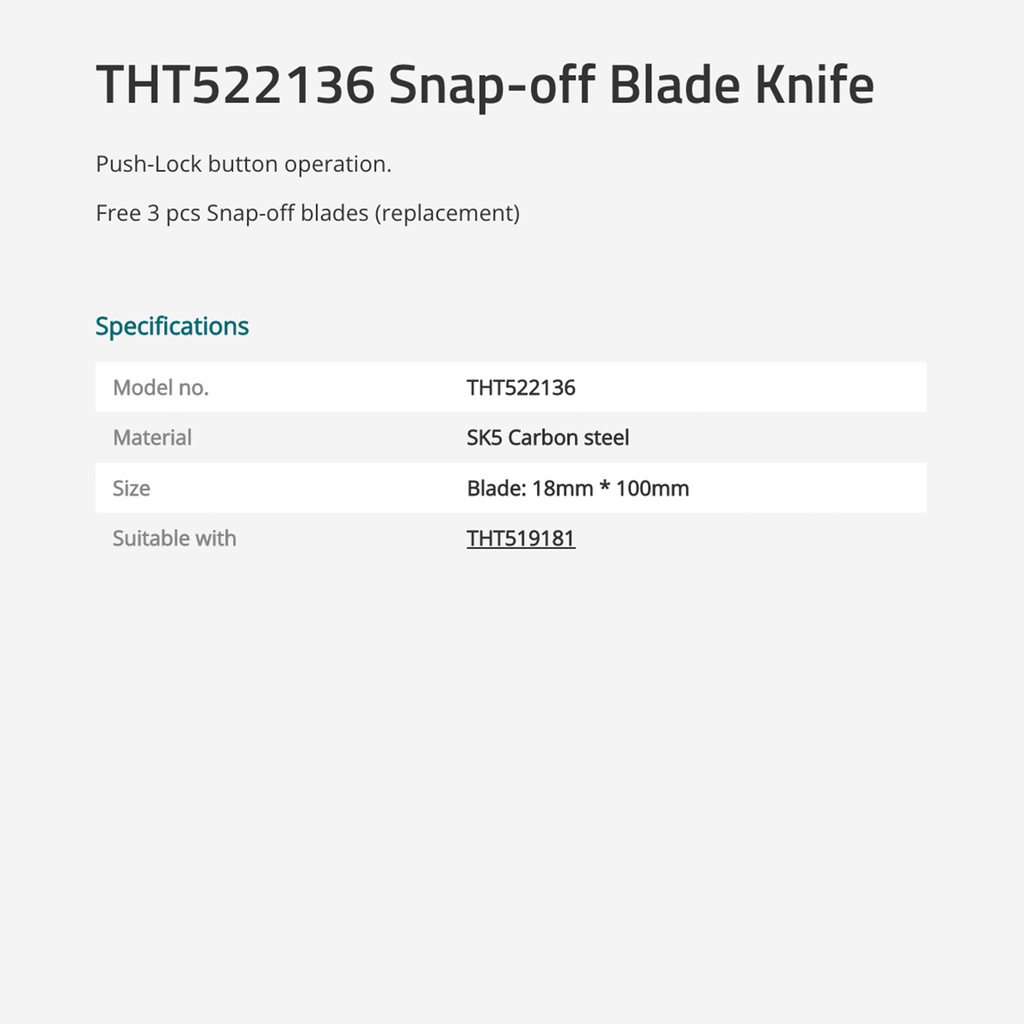 TOTAL Snap-Off Blade Knife With Push Lock Button (152mm) THT522136