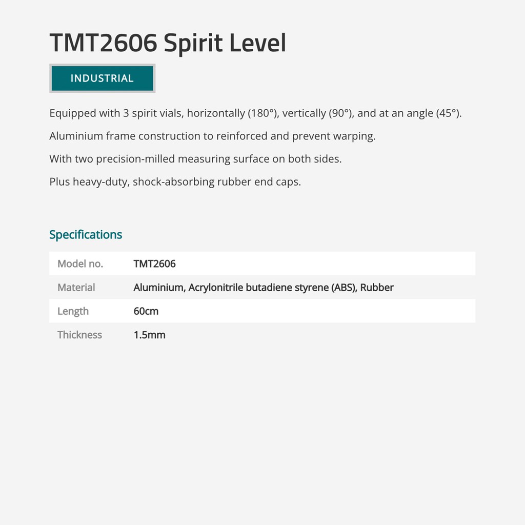 TOTAL Spirit Level w/3 Spirit Bubble 45°/90°/180° Milled Surface (30cm/40cm/60cm) TMT2306/TMT2406/TMT2606