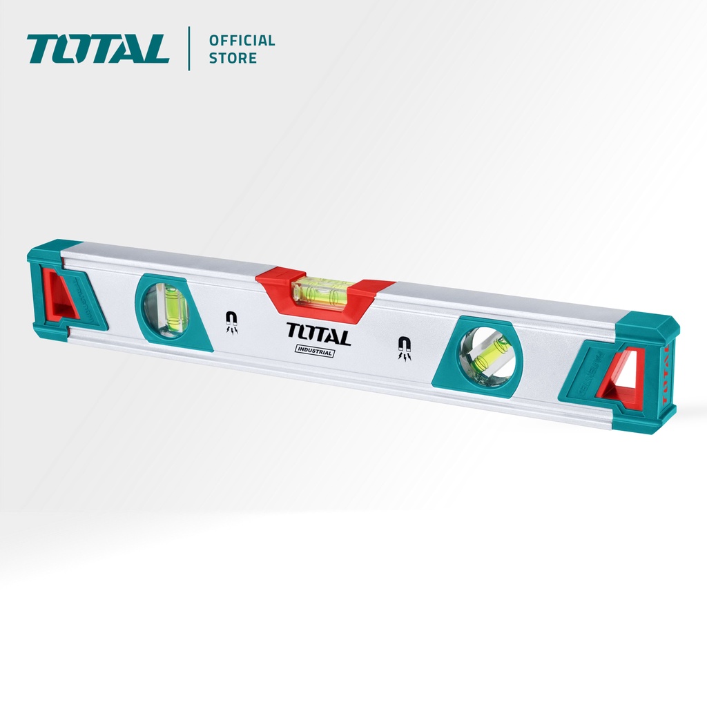 TOTAL Spirit Level 3 Spirit Bubble 45°/90°/180° Strong Magnet + Shock Absorbing Rubber End Caps (40cm) TMT20405M