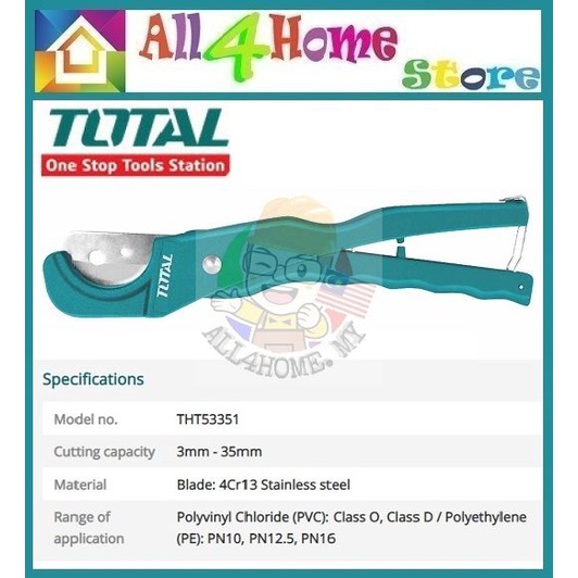 TOTAL TOOLS 3-35mm PVC Pipe Cutter Plumbing Tool PVC Cutter Heavy Duty - THT53351 / PVC Pipe Cutter (3-42mm) THT53425