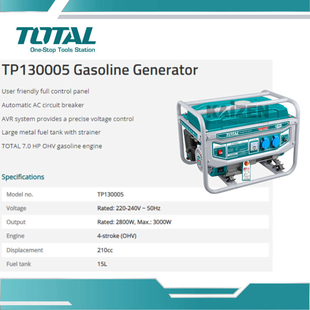 TOTAL TP130005 Gasoline Generator 3000W