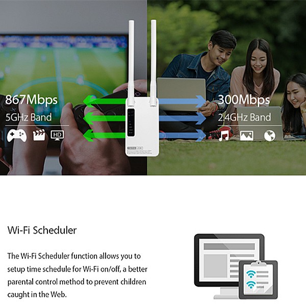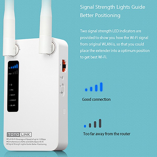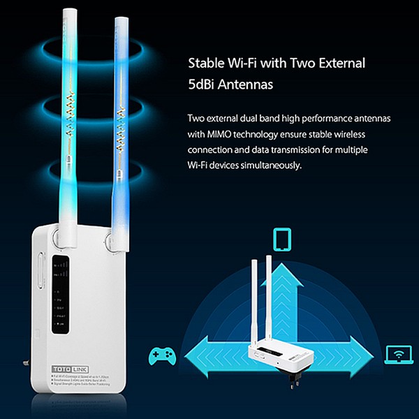 Totolink High Power EX1200M 2x5dBi AC1200 Mimo Wireless Wifi Range Extender/Repeater/AP Mode