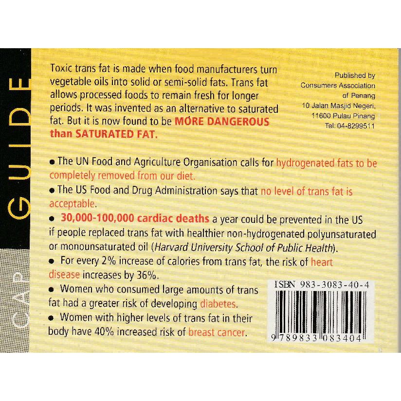 Consumers Association of Penang - CAP Guide - TOXIC TRANS FAT IN PROCESSED FOODS (Also available in Malay & Chinese)