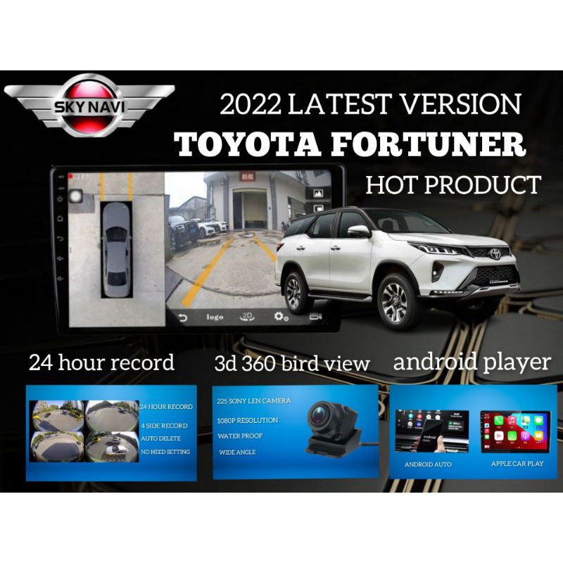 TOYOTA FORTUNER PRO SERIES CAR ANDROID PLAYER WITH 360 BIRD VIEW CAMERA