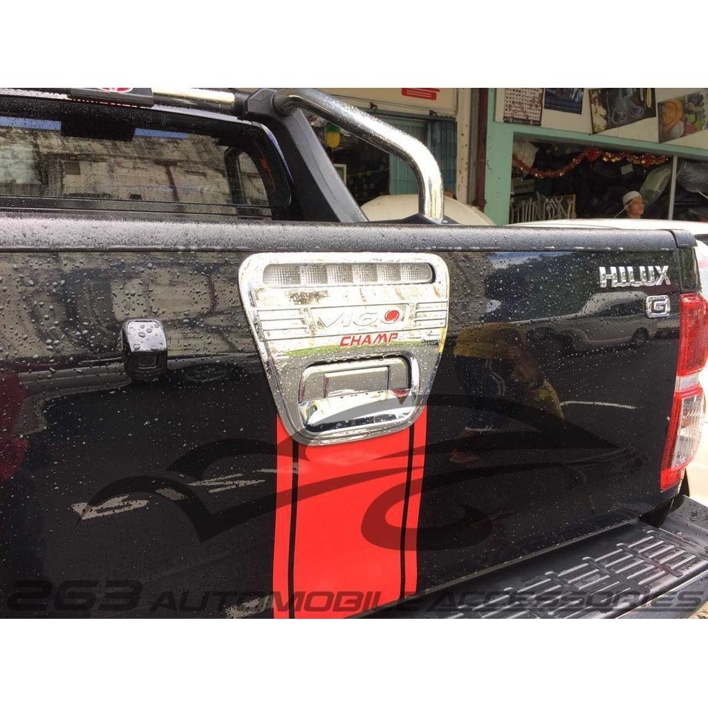 TOYOTA HILUX VIGO 2005-2015 TAILGATE INSERT TAIL GATE HANDLE COVER WITH LOGO 'VIGO CHAMP' (CHROME / BLACK)