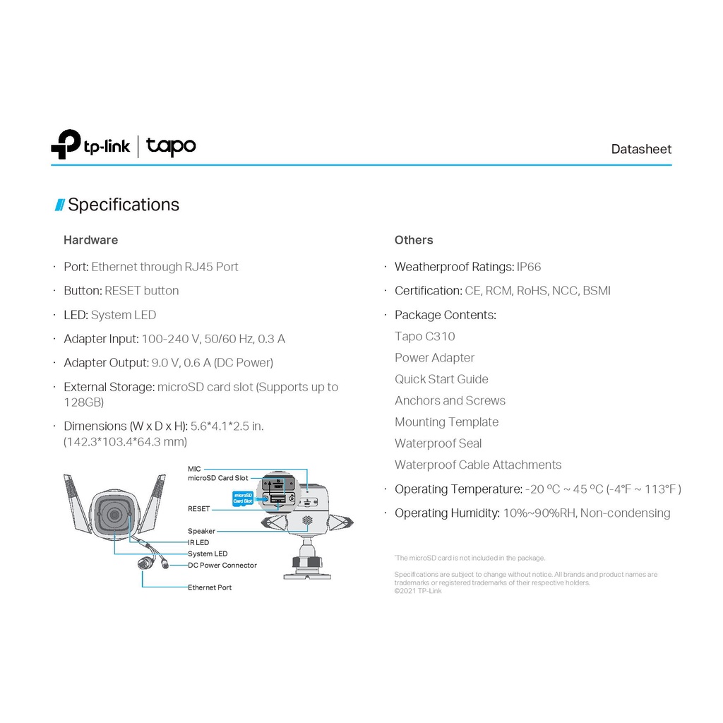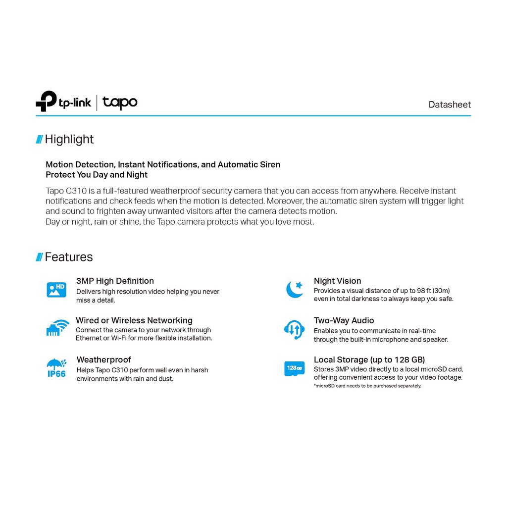 TP-LINK 3MP TAPO C310 OUTDOOR SECURITY WIFI CAMERA