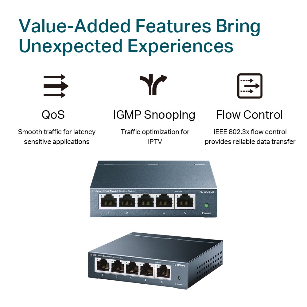 TP-LINK 5-Port Gigabit Unmanaged Pro With VLAN Features Switch TL-SG105E
