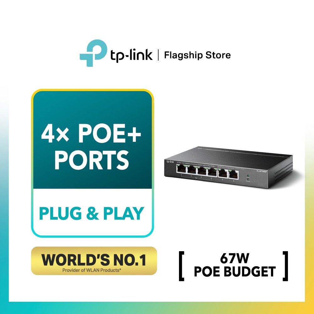 TP-LINK 6-Port With 4-Port PoE+ 10/100Mbps Desktop Switch TL-SF1006P