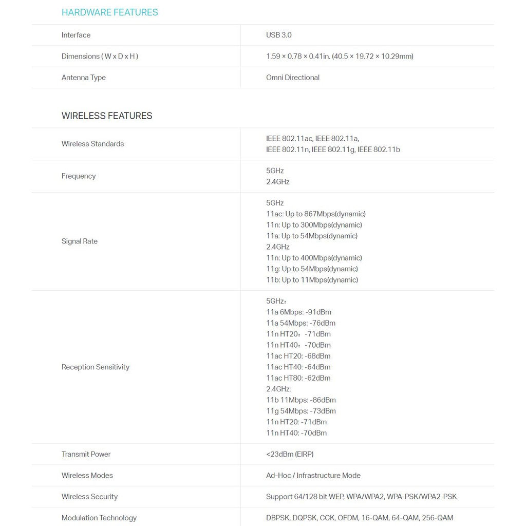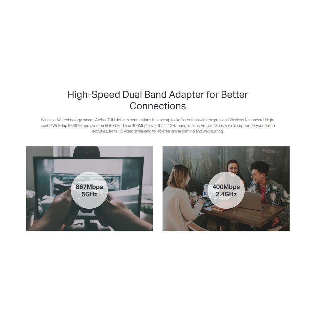 TP-LINK AC1300 Mini Wireless MU-MIMO USB WiFi Adapter Archer T3U Dual Band 5GHz + 2.4GHz