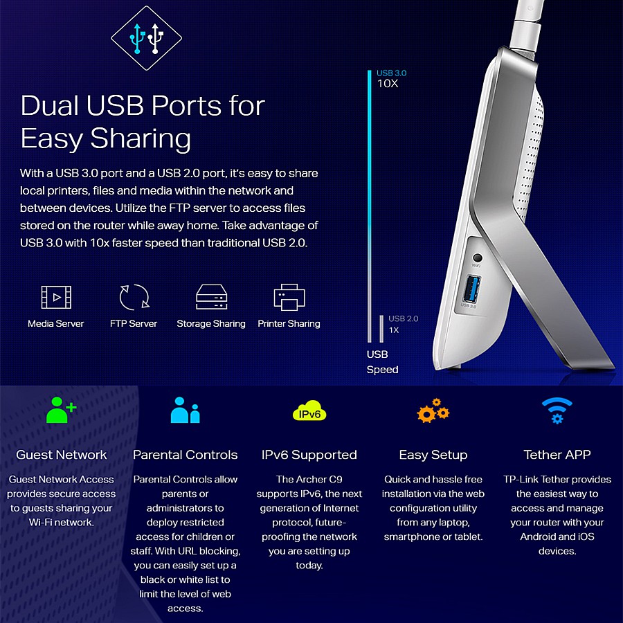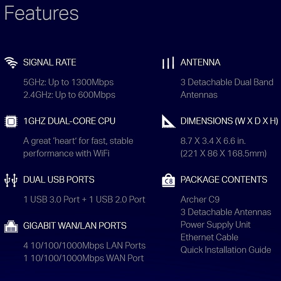 TP-Link AC1900 Wireless Dual Band Unifi Turbo Gigabit Wifi Router Archer C9