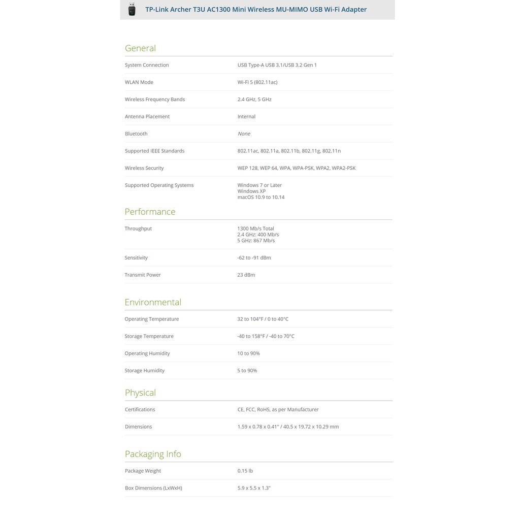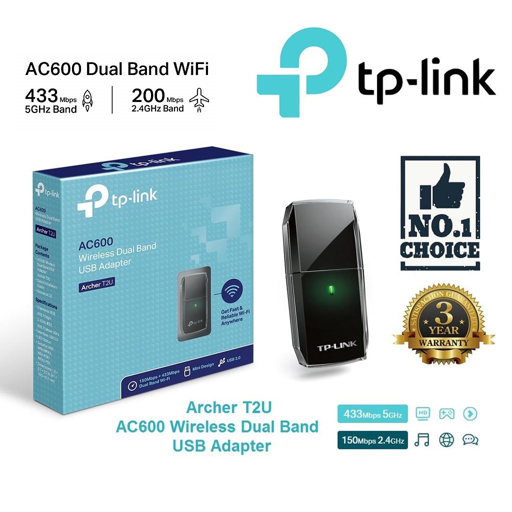 TP-LINK AC600 2.4GHz + 5GHz ARCHER T2U Wireless Dual Band USB Adapter (READY STOCK)