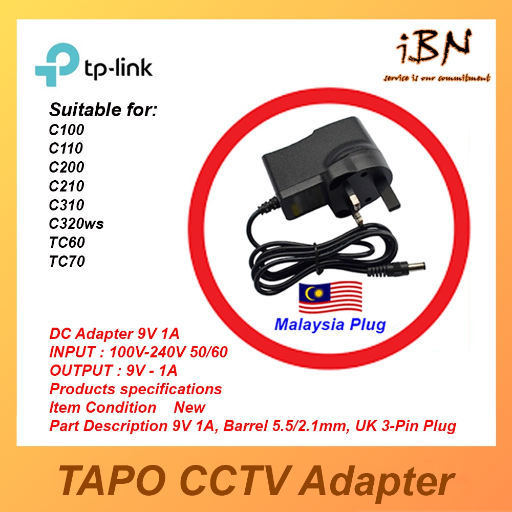 TP-LINK CCTV ADAPTER FOR TAPO C520WS/C320WS/C310/C200/C210/C220/C225/C100/C110/TC60/TC70/TC71/TC65/TC40 [MALAYSIA PLUG]
